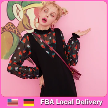 Related Product for autumn Dresses and ELFSACK US & DE FBA Local Deliery Black Strawberry Print 2020 Autumn Sweet Frill Sleeve Ladies Basic Fake Two Pieces Dresses