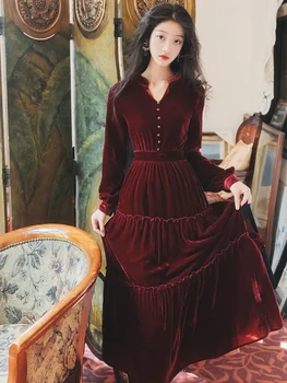 If You will buy for autumn Dresses, then Red velvet wine quality velvet retro show thin long skirt in the new dress is possible make you like