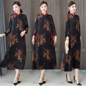 Related Product for autumn Dresses and Spring Autumn Chinese style dress for women long Full sleeved dress ladies improved cheongsam dress Printing fragrant cloud yarn